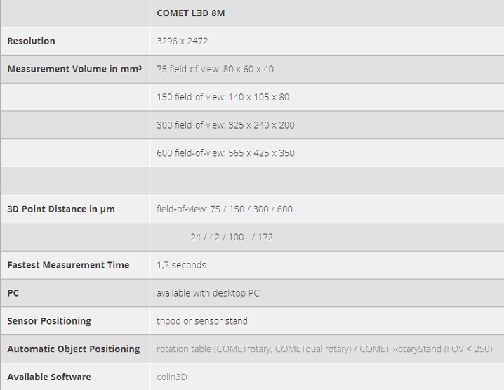 COMET LƎD 採用低損耗的LED光源技術, 其長時間的使用壽命, 可以在工作過程中極大的降低消耗成本. 單眼測量技術及受保護的測量頭設計, 結構精巧、輕便的掃描儀極易運輸及攜帶。